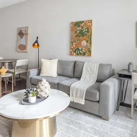 Landing Modern Apartment With Amazing Amenities features a fully-equipped kitchen furnished with an oven and a dishwasher.